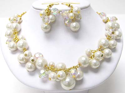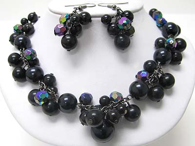 Mixed chunky cluster pearl beads and glass beads necklace earring set