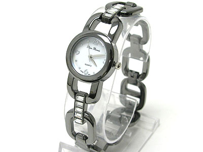 WHOLESALE SMALL ROUND FACE BARGUETTE CRYSTAL AND METAL LINK WATCH 349735