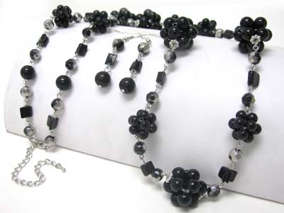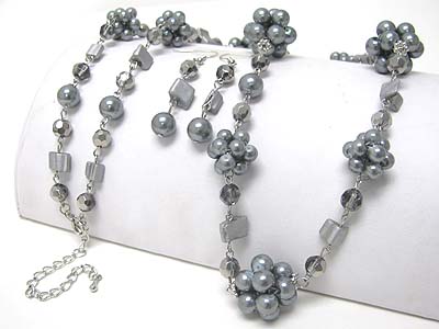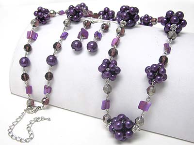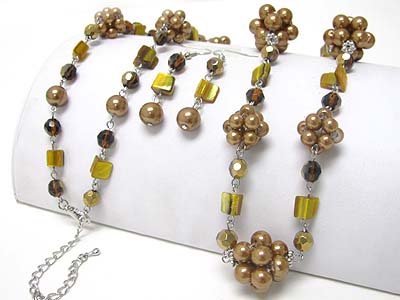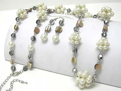 WHOLESALE PEARL BALL CLUSTER AND SEA SHELL LINK LONG CHAIN NECKLACE EARRING SET 349814
