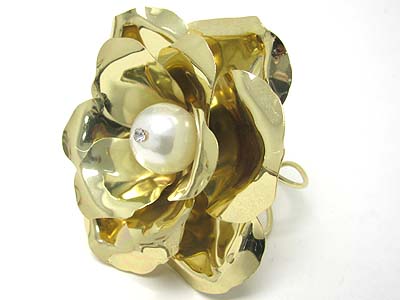 Pearl center large metal flower cuff bangle
