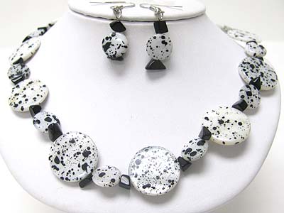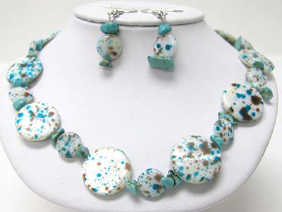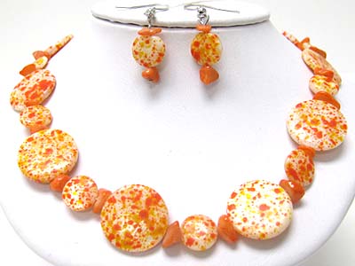 WHOLESALE NATURAL CHIP STONE AND SEA SHELL DISK LINK NECKLACE EARRING SET 349840