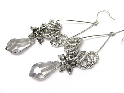 WHOLESALE CRYSTAL CUT GLASS FACET BALL AND METAL HOOP EARRING - HOOPS 349855
