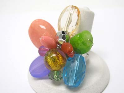 WHOLESALE MIXED NATURAL STONE AND BEADS FLOWER ADJUSTABLE SIZE RING 349873