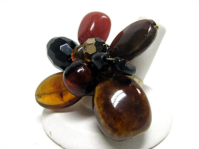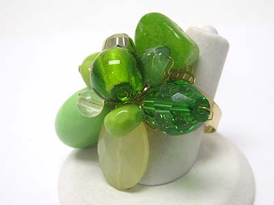 Mixed natural stone and beads flower adjustable size ring