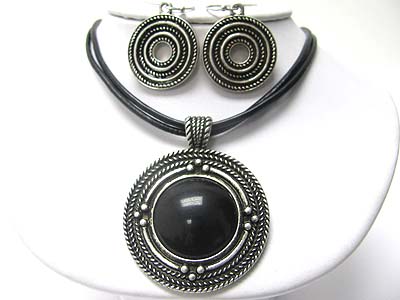 WHOLESALE ANTIQUE LOOK LARGE ROUND FORMAICA STONE MEDALLION NECKALCE EARRING SET ERARRING SET 350109