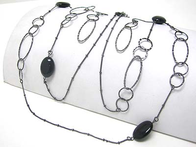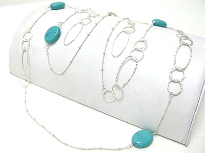 WHOLESALE NATURAL STONE AND METAL CAHIN LINK LONG NECKLACE 350116