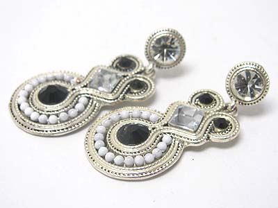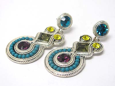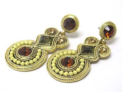Crystal and beads deco disk drop earring