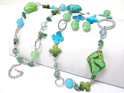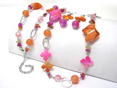 Spring theme flower and butterfly mixed acryl beads long necklace earring set