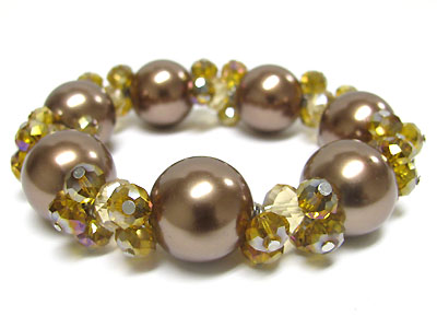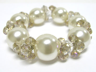 Crystal cut glass beads and acryl ball stretch bracelet