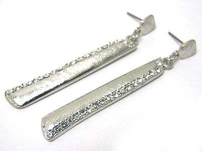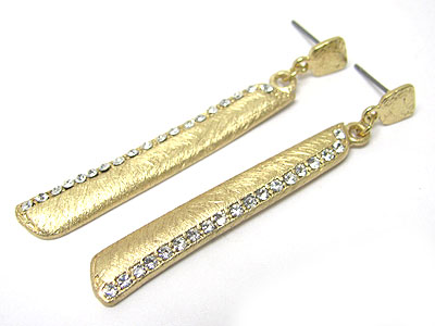 Crystal side long bar scratch metal earring - brass metal