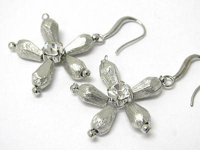WHOLESALE EPOXY STONE FLOWER SCRATCH METAL EARRING - BRASS METAL 350387