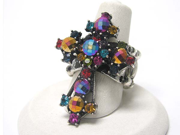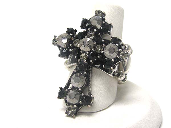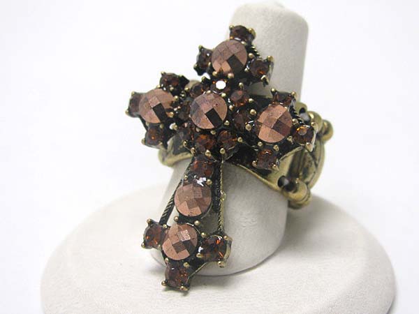 WHOLESALE CRYSTAL DECO LARGE CROSS TOP STRETCH RING 350404