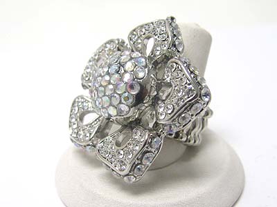 WHOLESALE CRYSTAL STUD FLOWER TOP METAL STRETCH BAND RING 350444
