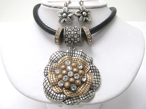 WHOLESALE CRYSTAL STUD TUBE AND CRYSTAL DECO FLOWER PENDANT CORD NECKLACE SET 350465
