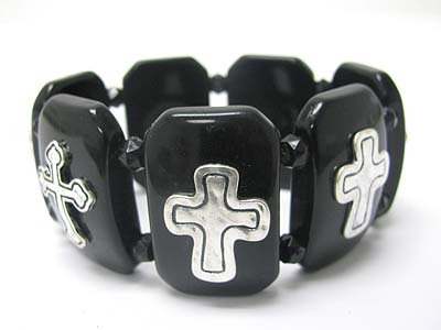 WHOLESALE METAL CROSS MARBLIC ACRYL LINK STRETCH BRACELET 350529