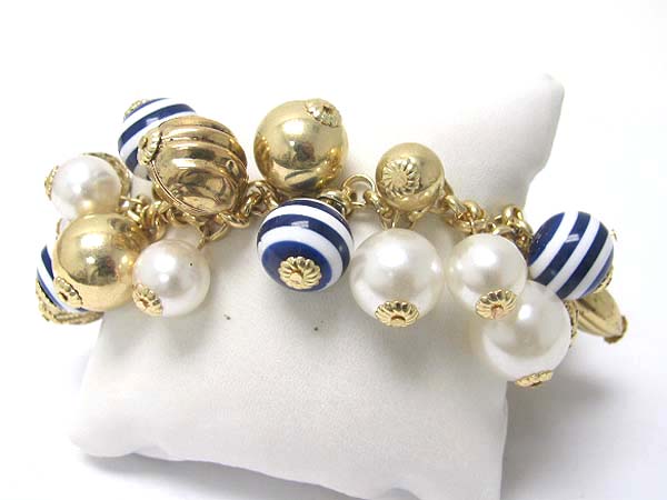 WHOLESALE NAUTICAL THEME METAL AND PEARL BEADS DANGLE BRACELET 350608