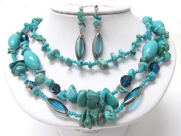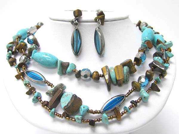 Multi strand mixed natural stone neckalce earring set