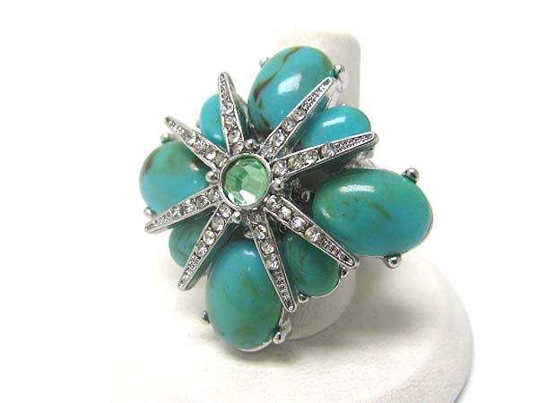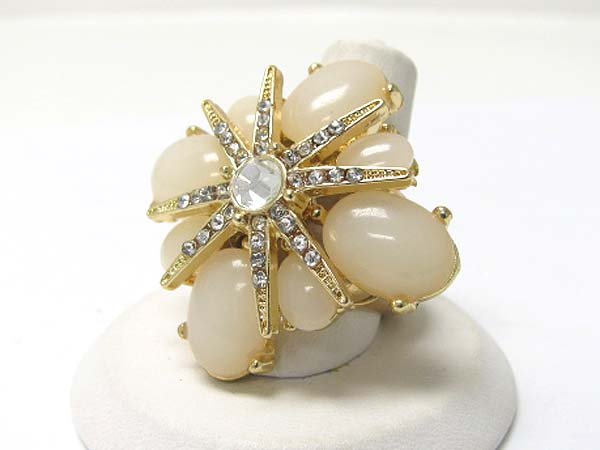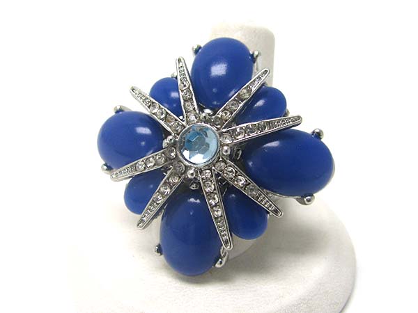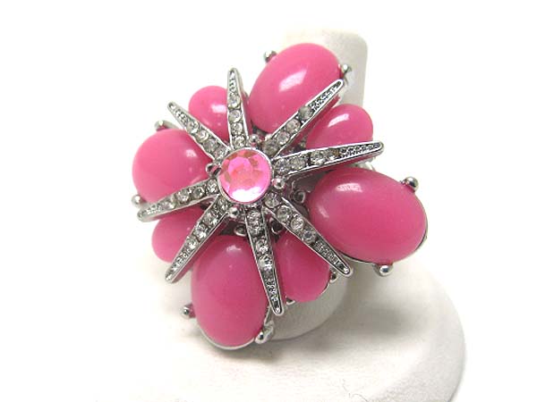 WHOLESALE CRYSTAL AND FORMICA STONE LARGE FLOWER STRETCH BAND RING 350652