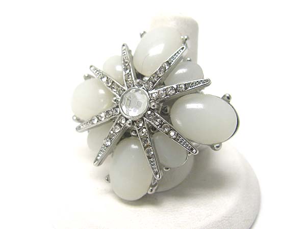 Crystal and formica stone large flower stretch band ring