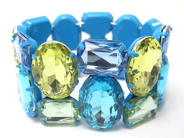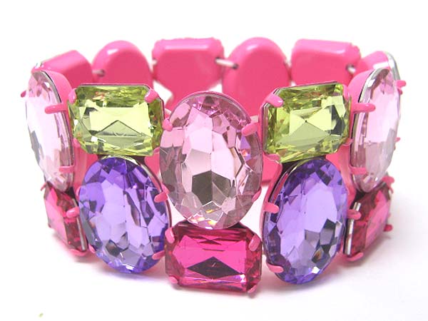 WHOLESALE LARGE FACET ACRYL STONE ENAMELD METAL STRETCH BRACELET 350664