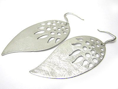 Cut out leaf scratch metal earring - brass metal