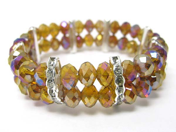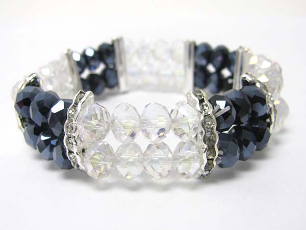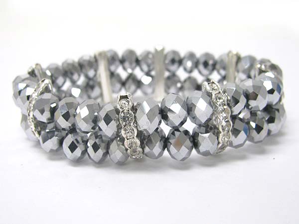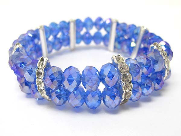 WHOLESALE TWO ROW CRYSTA LJOINT FACET GLASS BEADS STRETCH BRACELET 350833