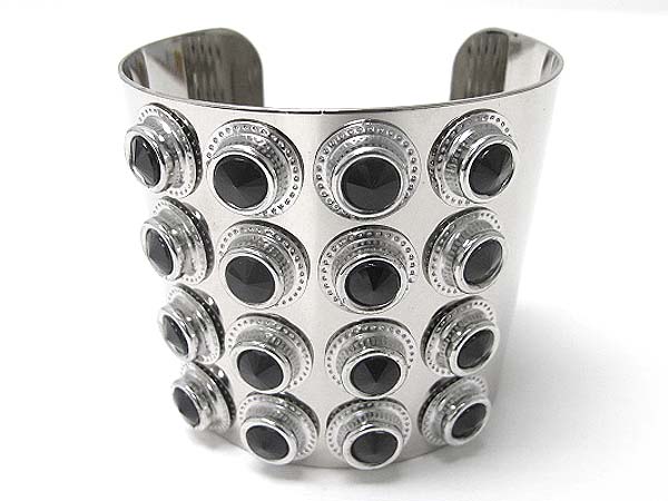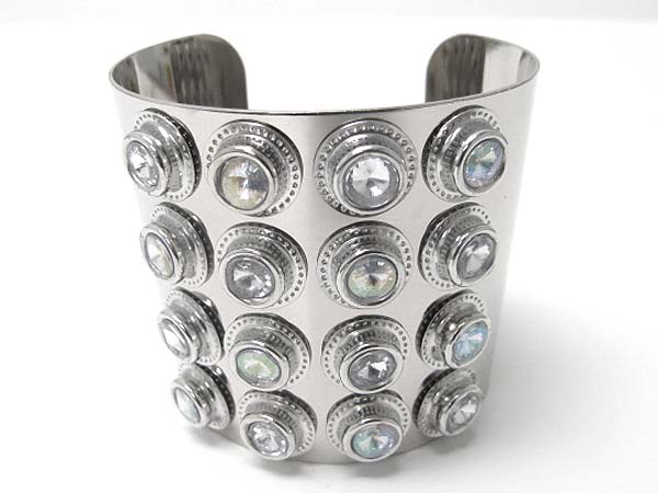 Crystal stud wide metal caff bangle