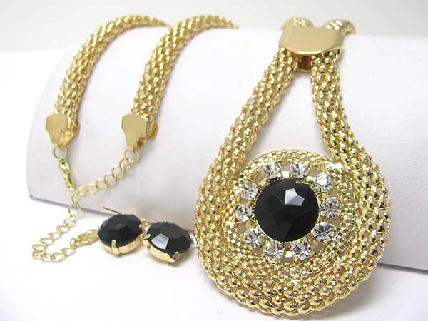 WHOLESALE CRYSTAL DECO ROUND PENDANT TUBE CHAIN NECKLACE EARRING SET 350925