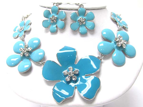 WHOLESALE CRYSTAL STUD METAL EPOXY FLOWER LINK NECKLACE EARRING SET 350948