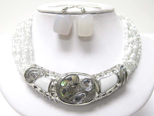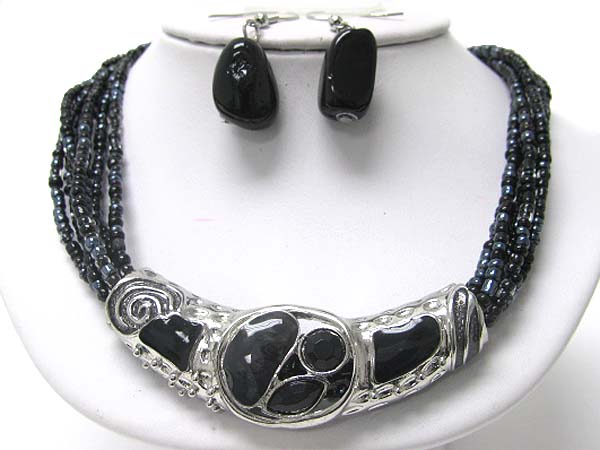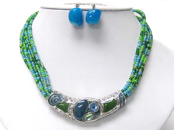 Glass and metal art metal tube pendant seed beads necklace set