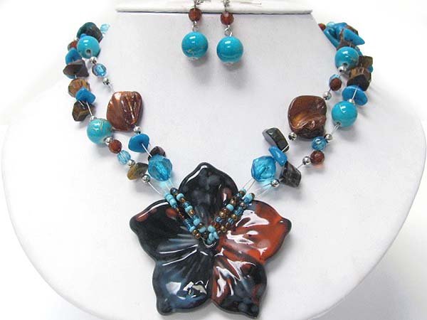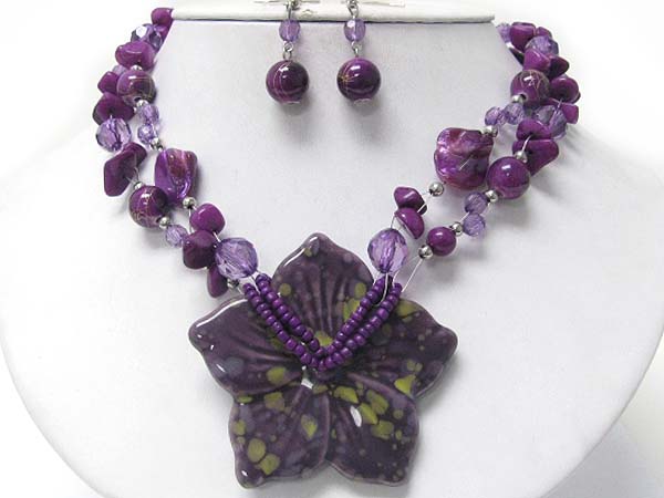Acryl flower pendant and mixed beads necklace set