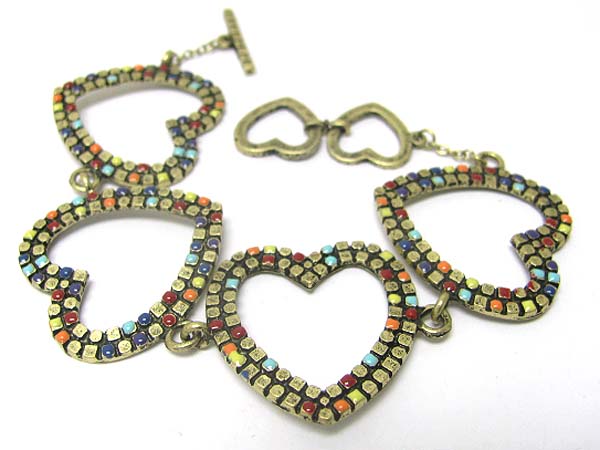 Colored heart metal link bracelet