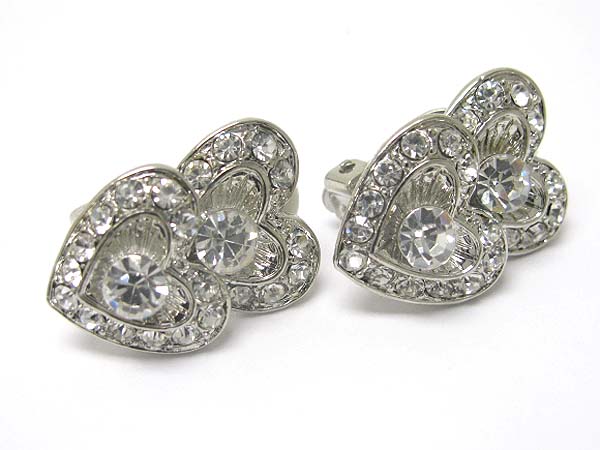 WHOLESALE CRYSTAL STUD DUAL HEART CLIP ON EARRING 351085