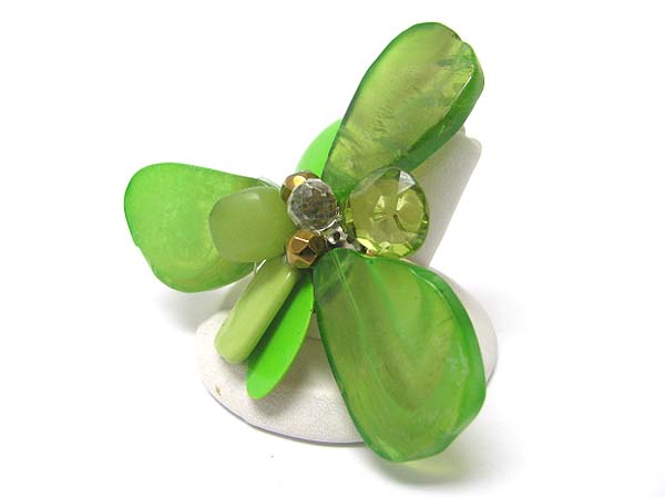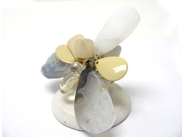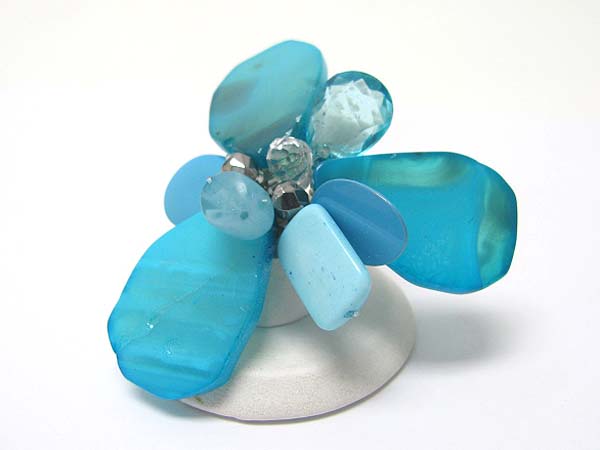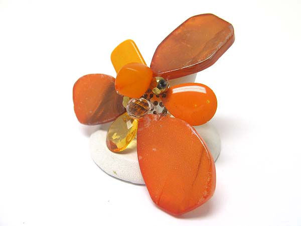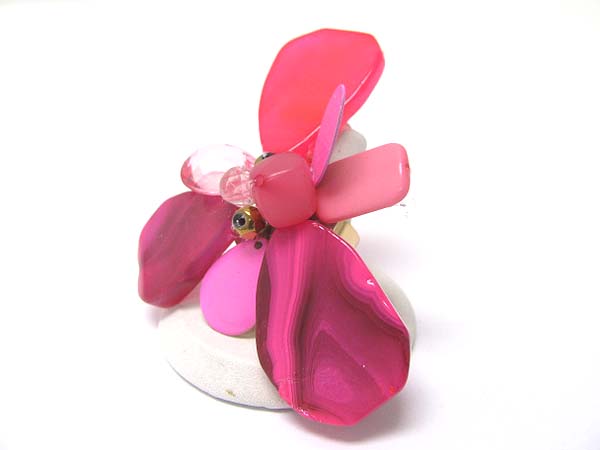 Mixed acryl beads and stone flower adjustable ring