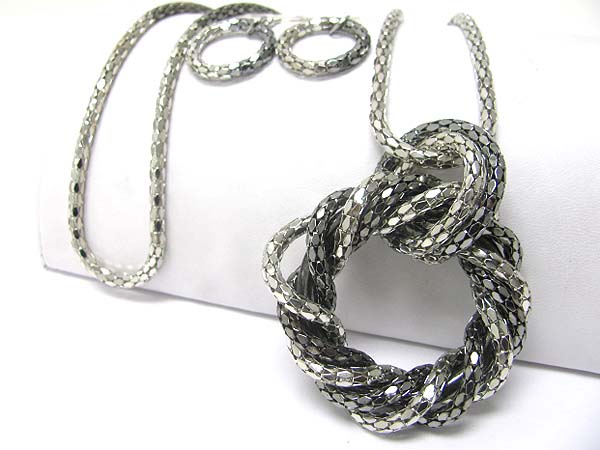 WHOLESALE MULTI ROW BRAIDED YUBE CHAIN LONG NECKLACE EARRING SET 351108