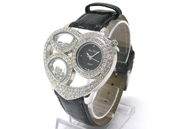 WHOLESALE CRYSTAL FRAME HEART FACE LEATHER BAND WATCH 351200