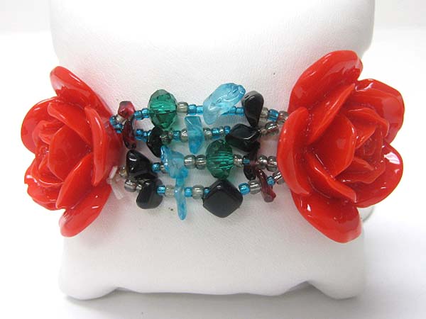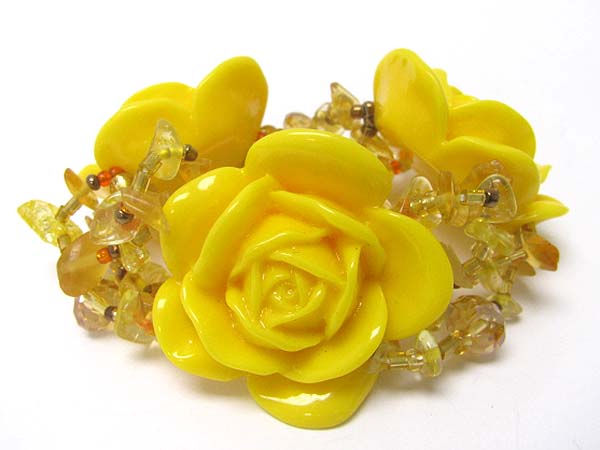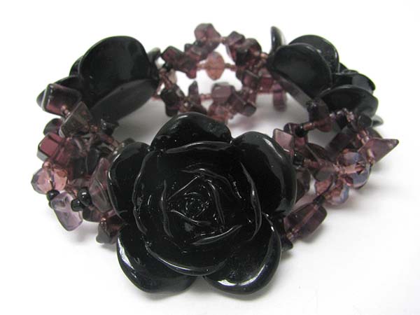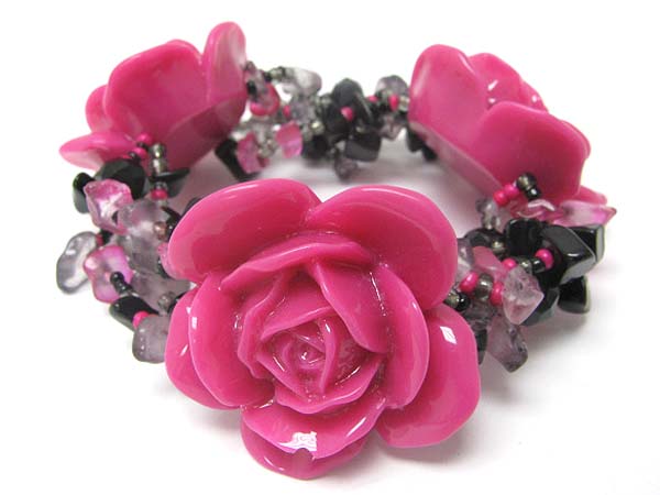 WHOLESALE ACRYL FLOWER AND NATURAL CHIP STONE STRETCH BRACELET 351281