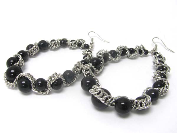 WHOLESALE METAL CHAIN AND BEADS HOOP EARRING - HOOPS 351291