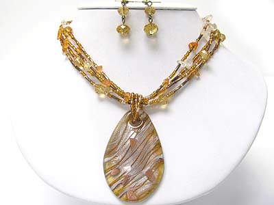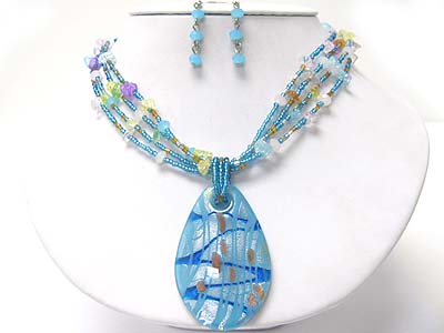 WHOLESALE MURANO GLASS PENDANT AND NATURAL CHIP STONE MULTI ROW NECKLACE SET 351298