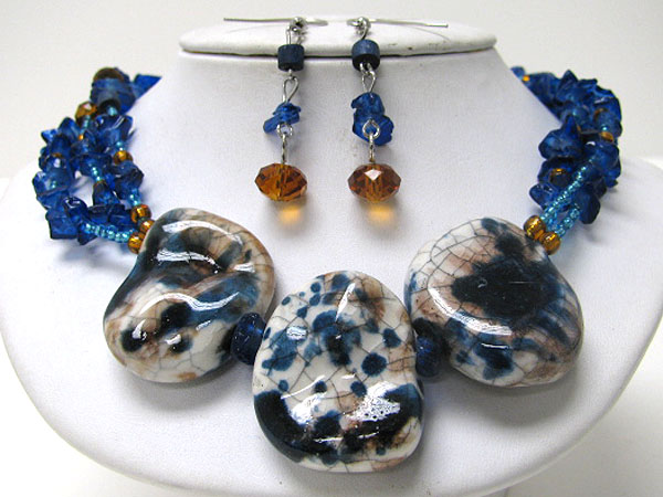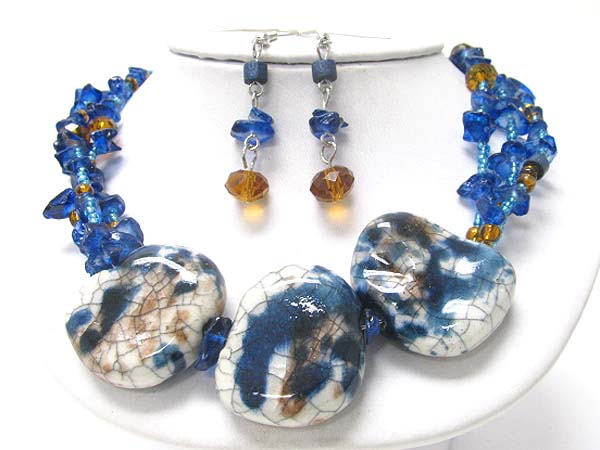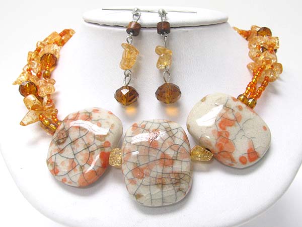 WHOLESALE NATURAL STONE AND MULTI ROW MIXED BEADS NECKLACE SET 351302