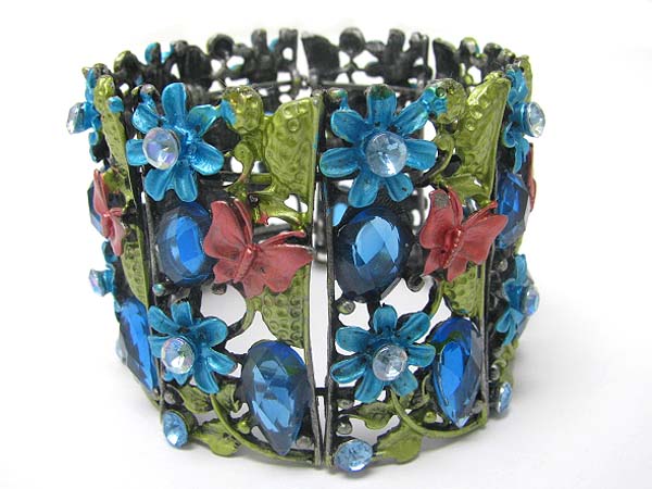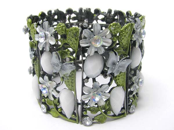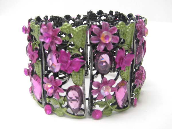 WHOLESALE CRYSTAL METAL EPOXY FACET GLASS WIDE BLOSSOM BANGLE 351326
