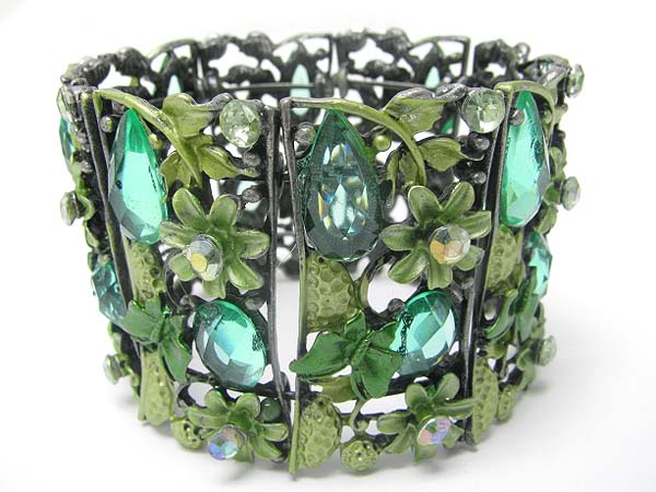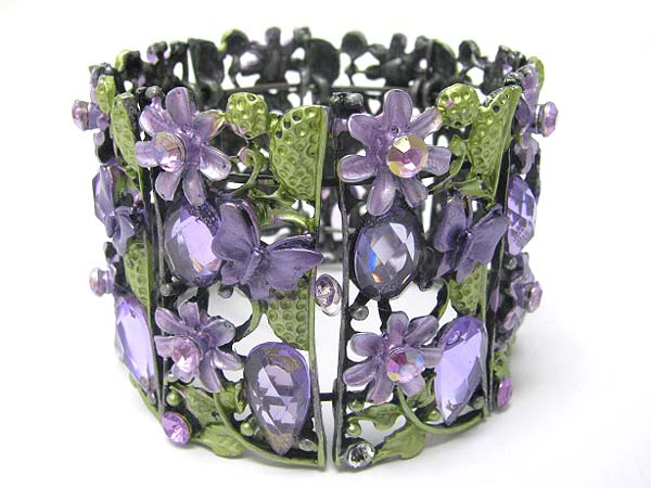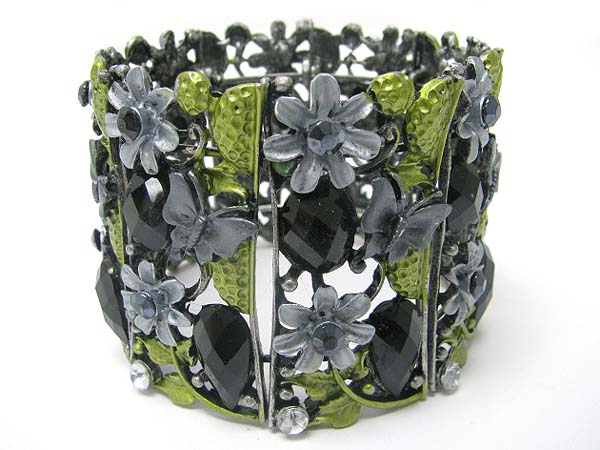 Crystal metal epoxy facet glass wide blossom bangle