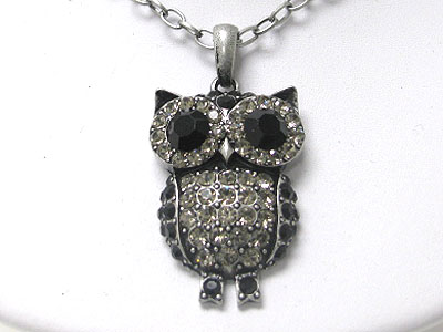 Crystal drop owl pendant neckalce