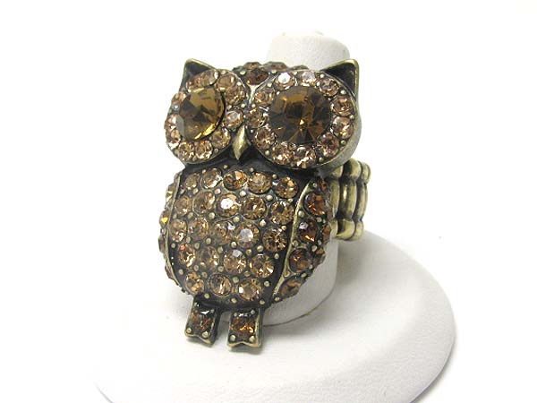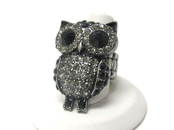 WHOLESALE CRYSTAL OWL METAL STRETCH RING 351396