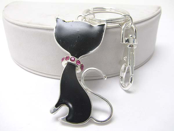 Crystal and enamel cat key chain charm