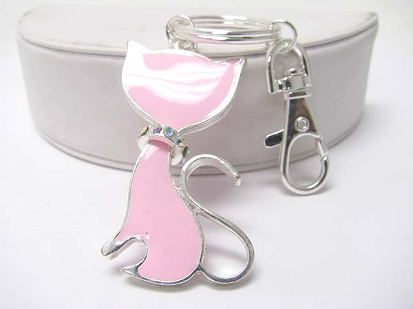 WHOLESALE CRYSTAL AND ENAMEL CAT KEY CHAIN CHARM 351411