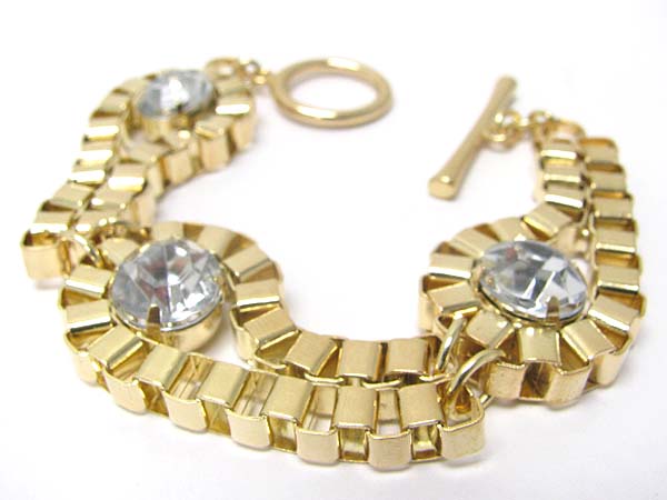 Crystal stud metal box chain togle bracelet