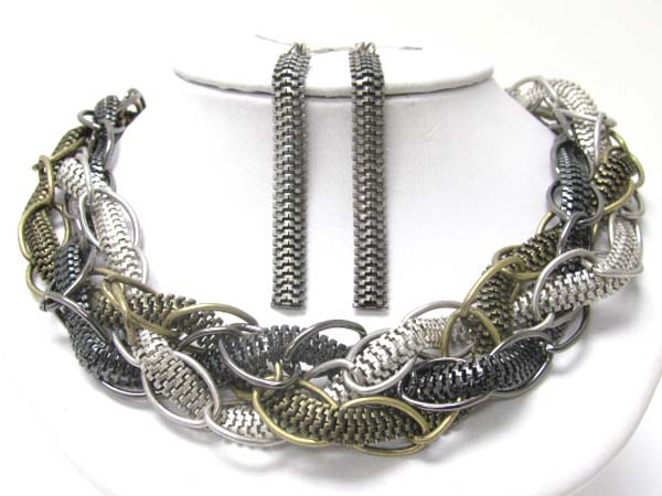 WHOLESALE BRAIDED MIXED CHAIN NECKLACE EARRING SET 351430