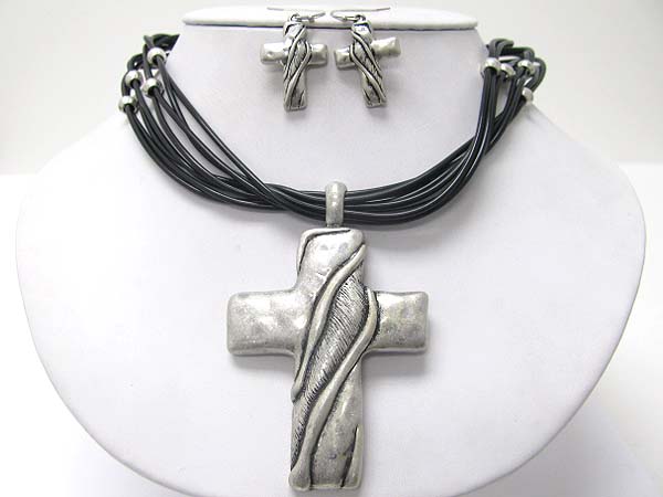 WHOLESALE CROSS PENDANR CORD NEKCKLACE EARRING SET 351496