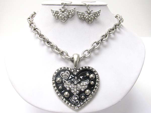 WHOLESALE CRYSTAL STUD METAL HEART PENDANT PENDANT NECKLACE SET 351516